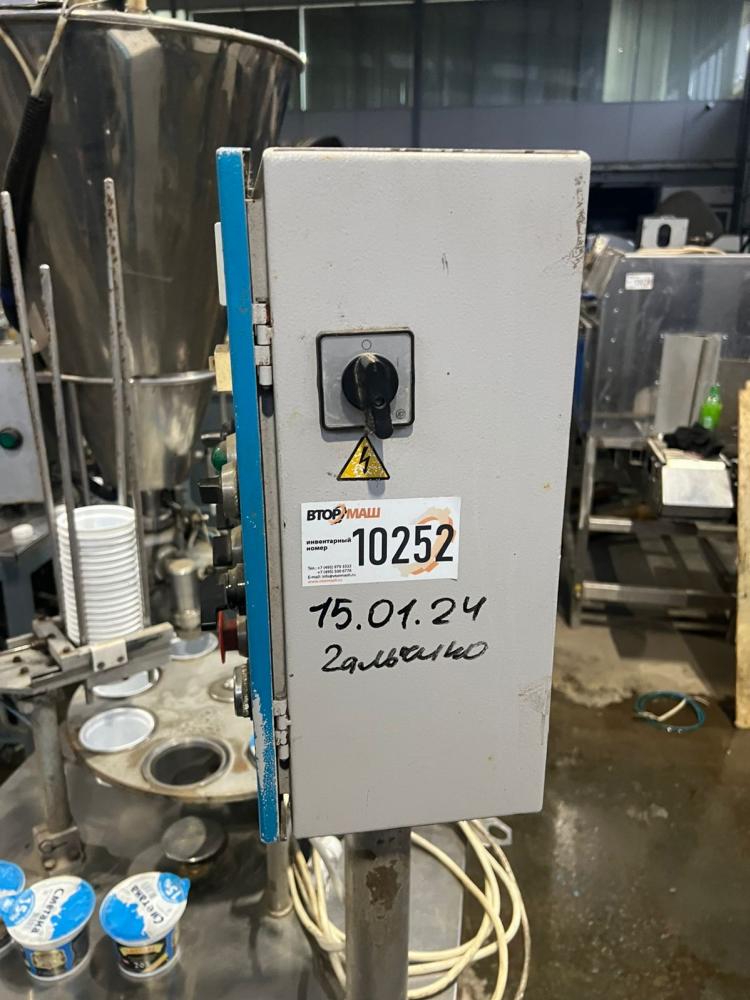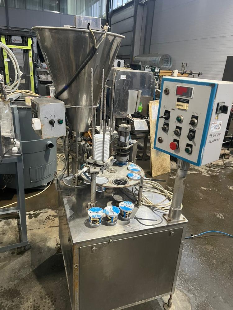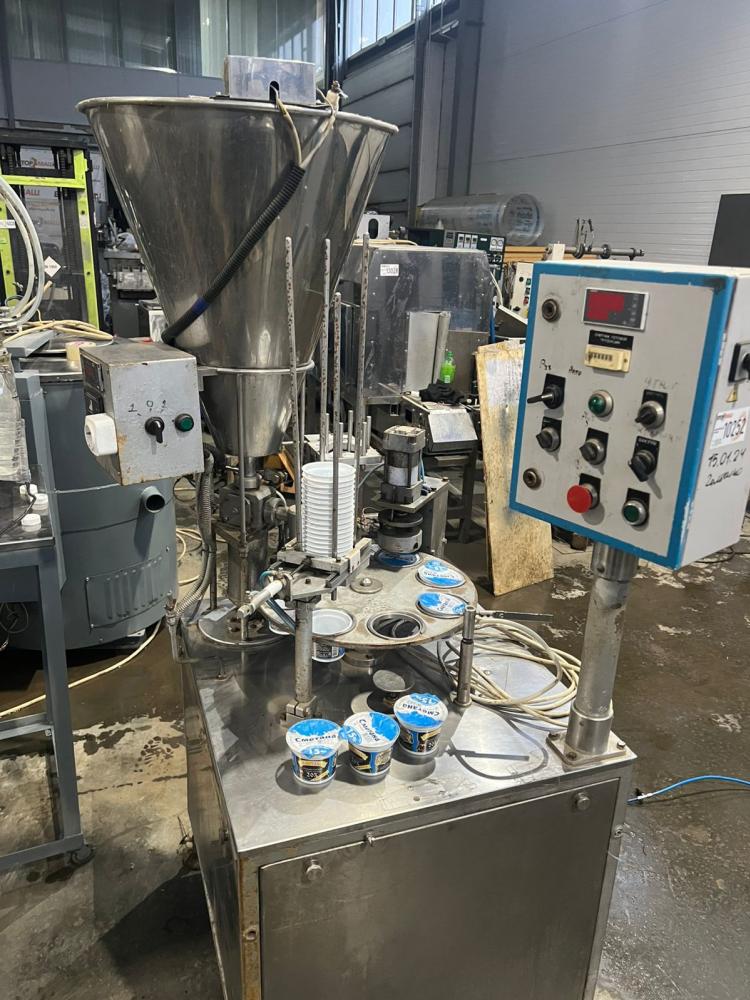 Фасовщик-полуавтомат жидких, пастообразных и труднотекучих пищевых продуктов с запечатыванием стаканчиков алюминиевой фольгой или валкилидом