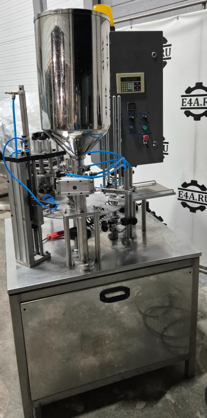 Фасовщик в стаканчики ПАСТПАК Р, предназначен для дозированной фасовки в стакан жидких и пастообразных продуктов с последующей запайкой фольгой.