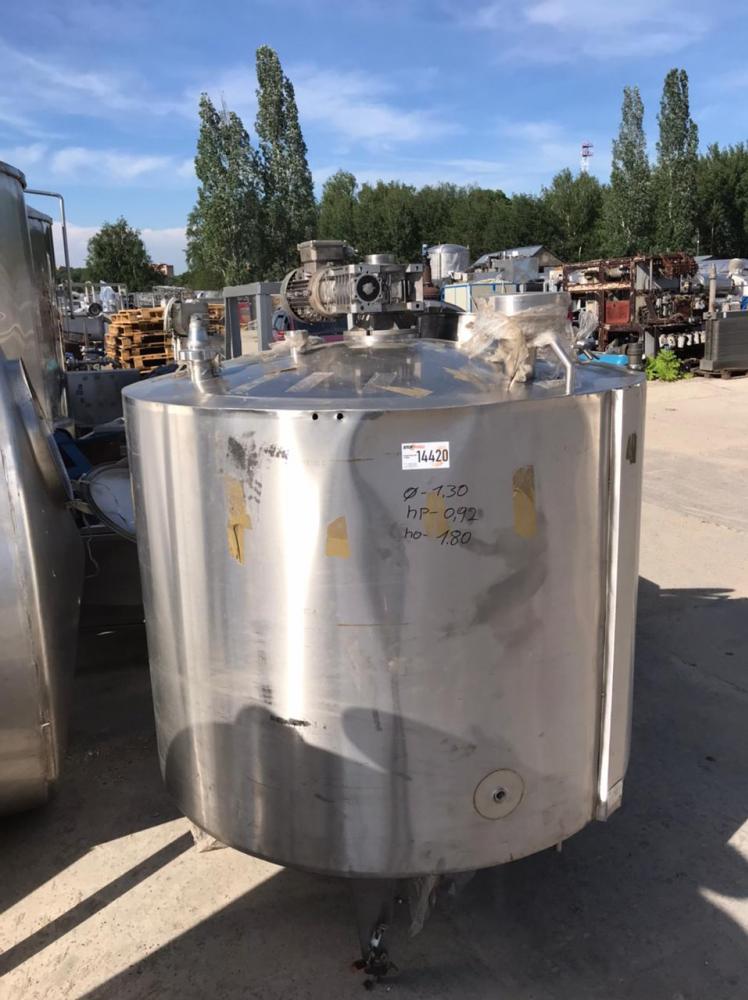 Емкость нержавеющая объемом 1000л (1 куб.м.) с паровой рубашкой, рамной мешалкой, мотор-редуктором.
