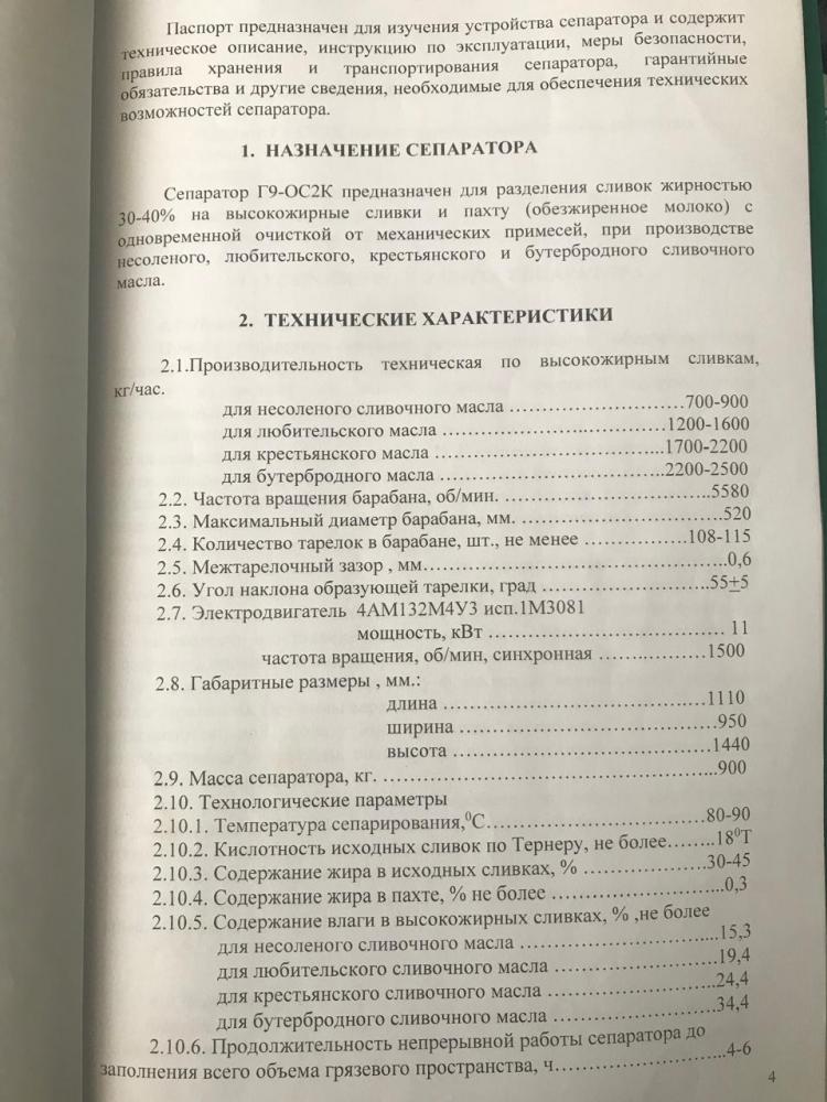 Сепаратор высокожирных сливок марки Г9-ОСК с ручной периодической выгрузкой осадка предназначен для разделения сливок жирностью 30-40% на высокожирные сливки и пахту с одновременной очисткой их от механических примесей в линии производства сливочного масла.