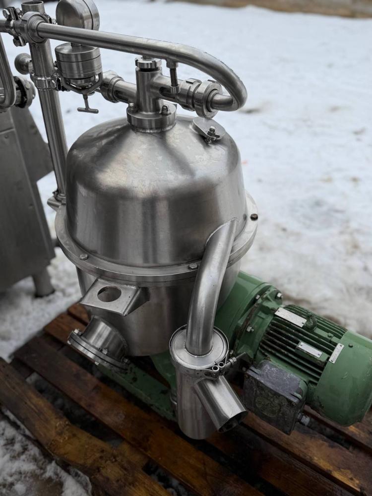 Жироотделитель с одним центростремительным насосом для тяжелой фазы (например, вода/обезжиренное молоко) с самоочищающейся чашей. Сепаратор используется для разделения жидких смесей, в которых доля легкой фазы (например, жир/остаточное масло) мала (менее 10%) или варьируется в широких пределах.