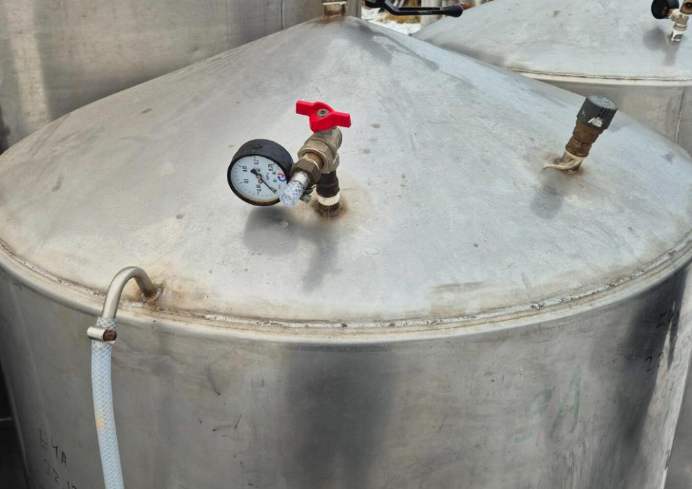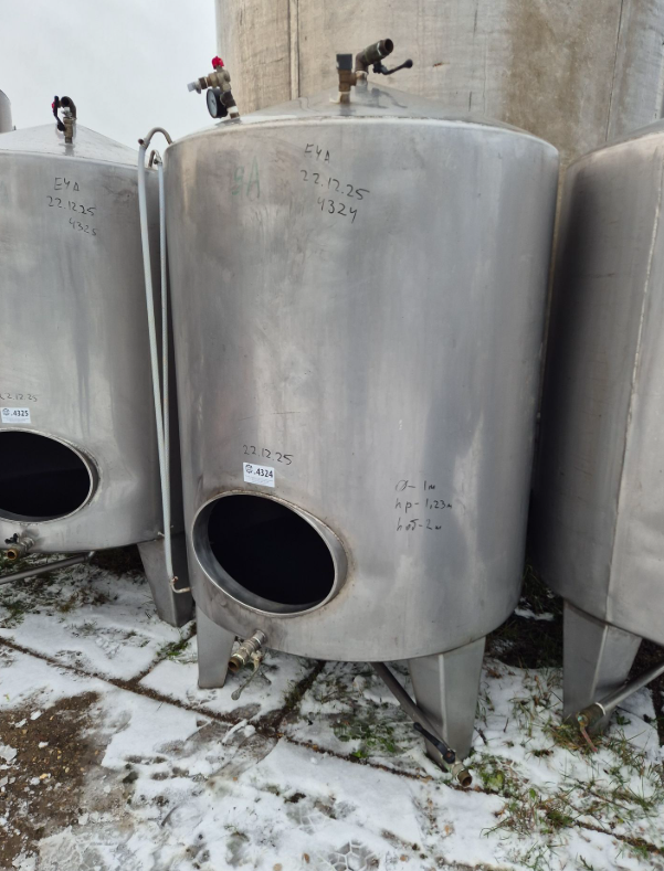 Емкости нержавеющие, объем 1 куб.м. вертикального исполнения, люк на цилиндрической части.