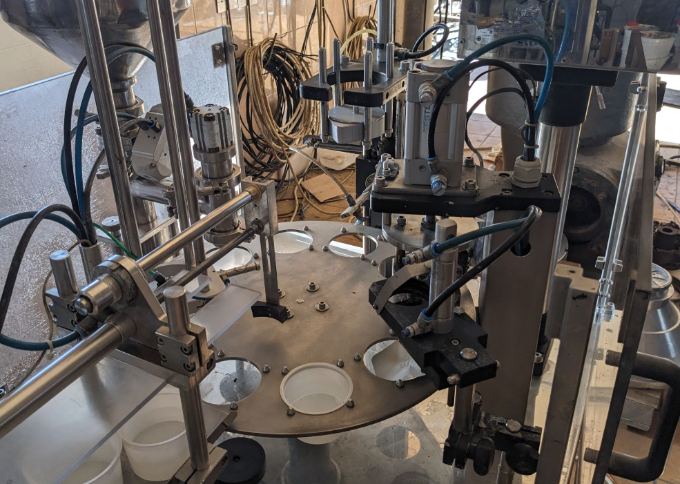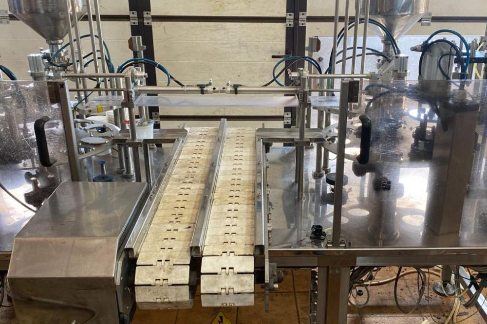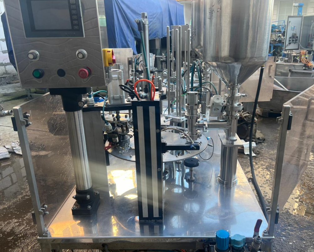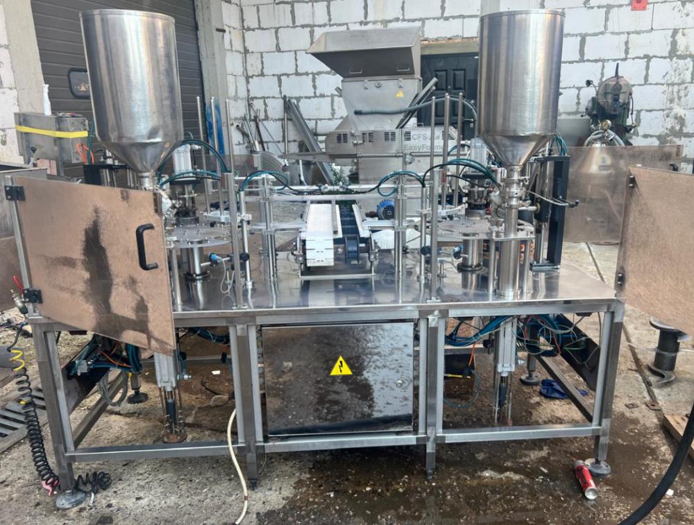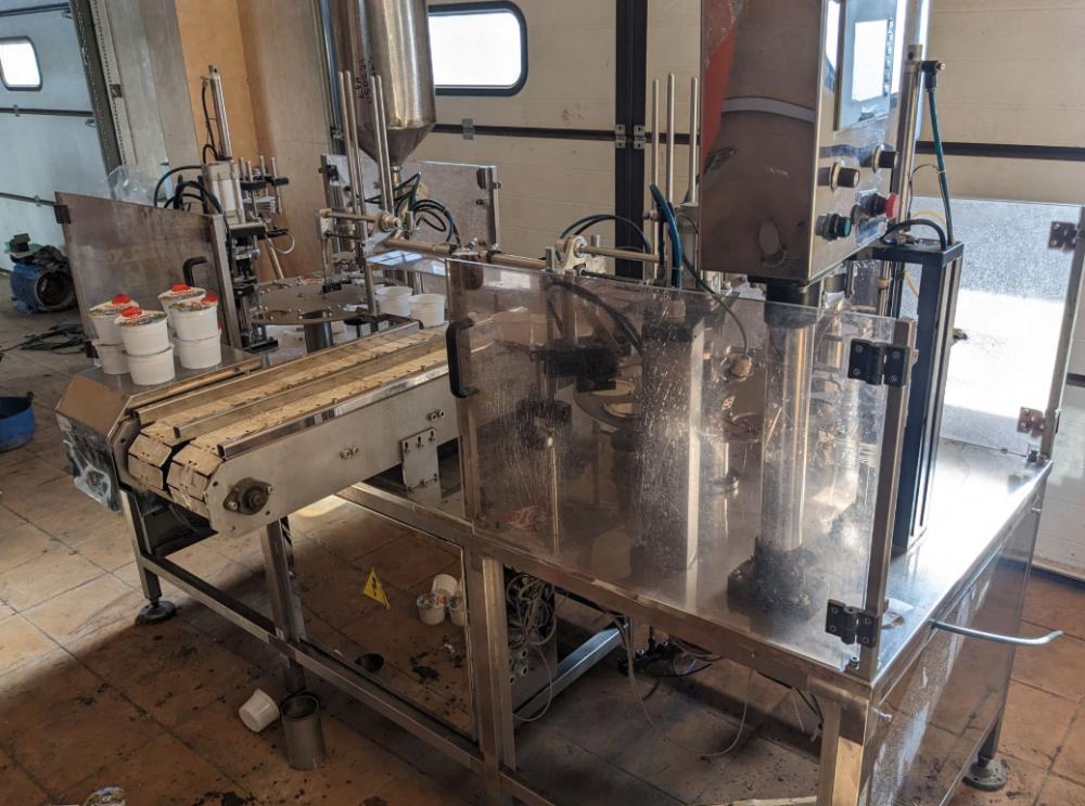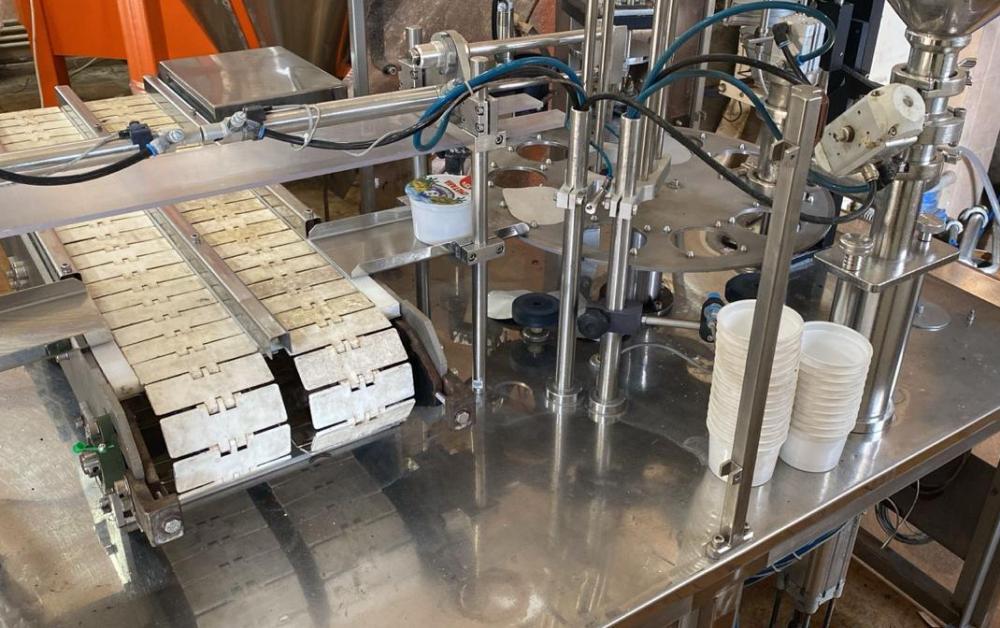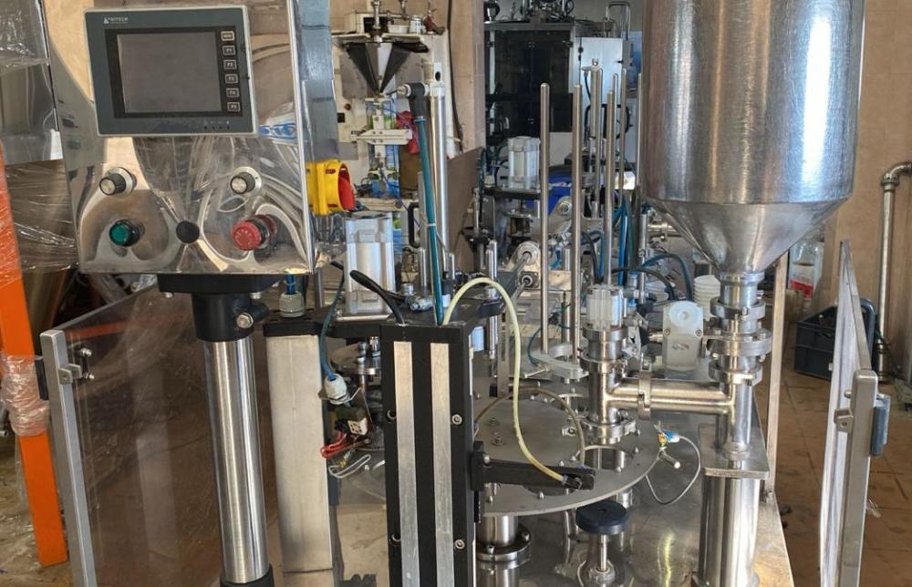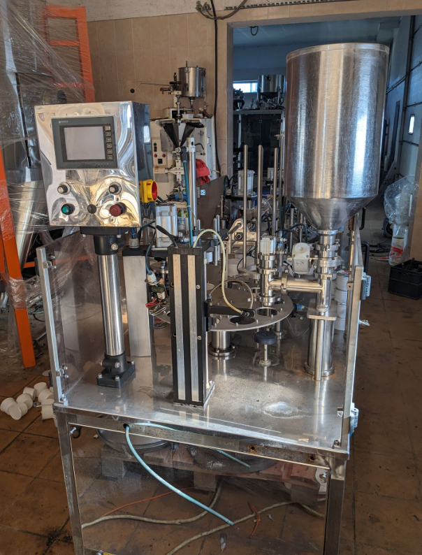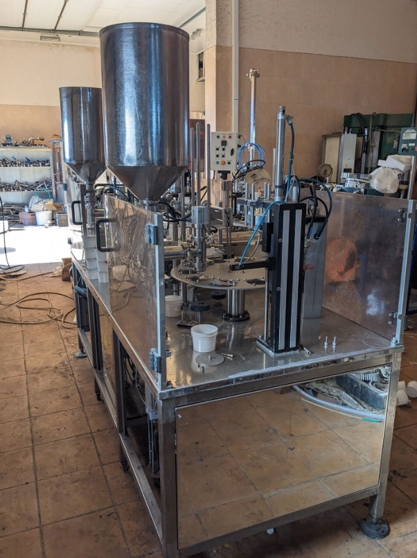 предназначен для дозированной фасовки в пластиковую тару различных форм и размеров жидких и пастообразных продуктов с добавлением мягких, легко деформирующихся компонентов размером до 10 мм, с последующей запайкой фольгой и укупоркой пластиковой крышкой.