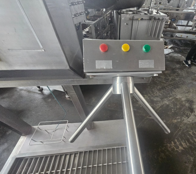Принцип работы: как только руки подносятся к дезинфекционному боксу, фотоэлемент включает систему, которая разбрызгивает дезинфекционную жидкость. После дезинфекции рук открывается пропускник. Нижняя часть станции сконструирована таким образом, что сначала наступает дезинфекция подошв, а потом лишняя вода стекает с сапог перед входом в цех. При входе происходит дезинфекция рук и подошв, обратный выход - свободный.