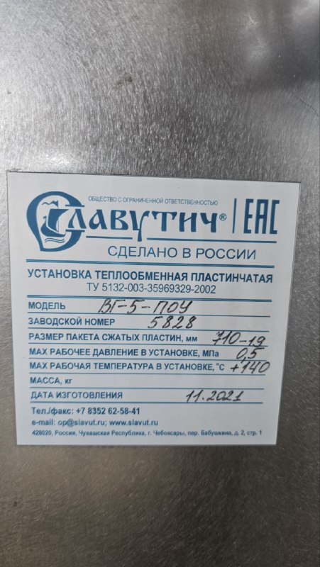 ПОД ВОССТАНОВЛЕНИЕ Пластинчатый теплообменник ОКЛ-5.