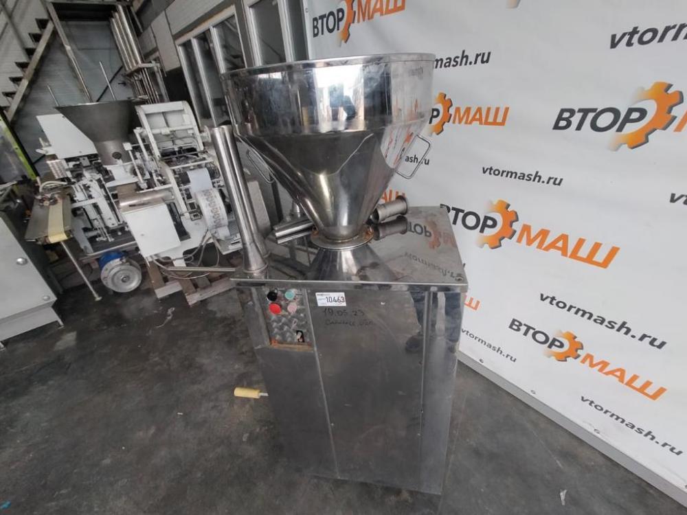 (двух-шнековый, прямой набивки) предназначен для непрерывного наполнения в вакуумной среде колбасных оболочек фаршем при производстве вареных и полукопченых колбас, сарделек, сосисок. Двух-шнековые вытеснители лишены недостатков одношнековых вытеснителей, сводит на нет возможное перетирание фарша, перераспределение компонентов по объёму фарша, пульсацию фарша на выходе из вытеснителя.