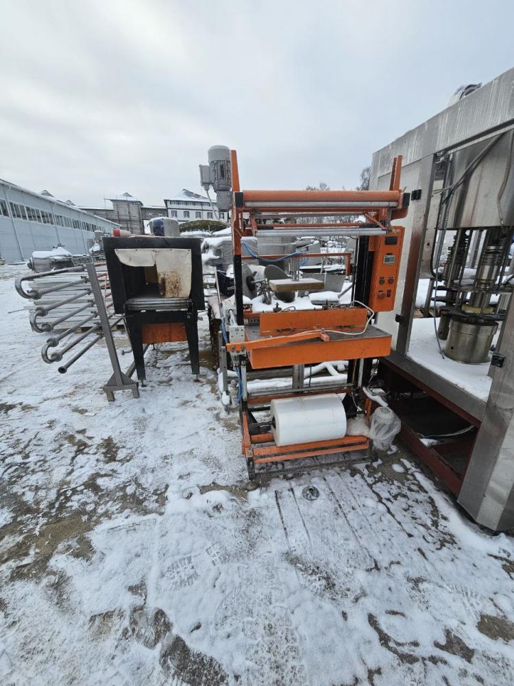 Производство ПАКВЕРК. Применяется для различной продукции (бутылки, банки, канистры, коробки, пакеты с бакалейной продукцией и тп.) в термоусадочную полиэтиленовую (ПЭ) пленку. Упаковочная линия УМ-1 "Эконом" состоит из ручного термоножа и приводного термононнеля с пластинчатым транспортером.